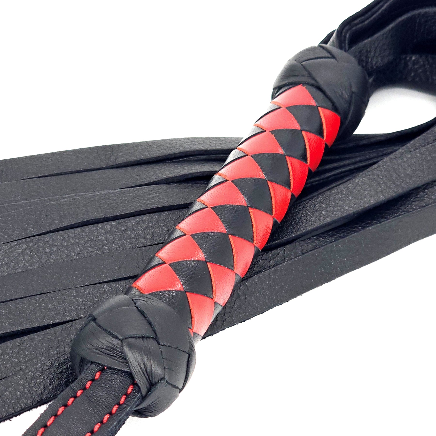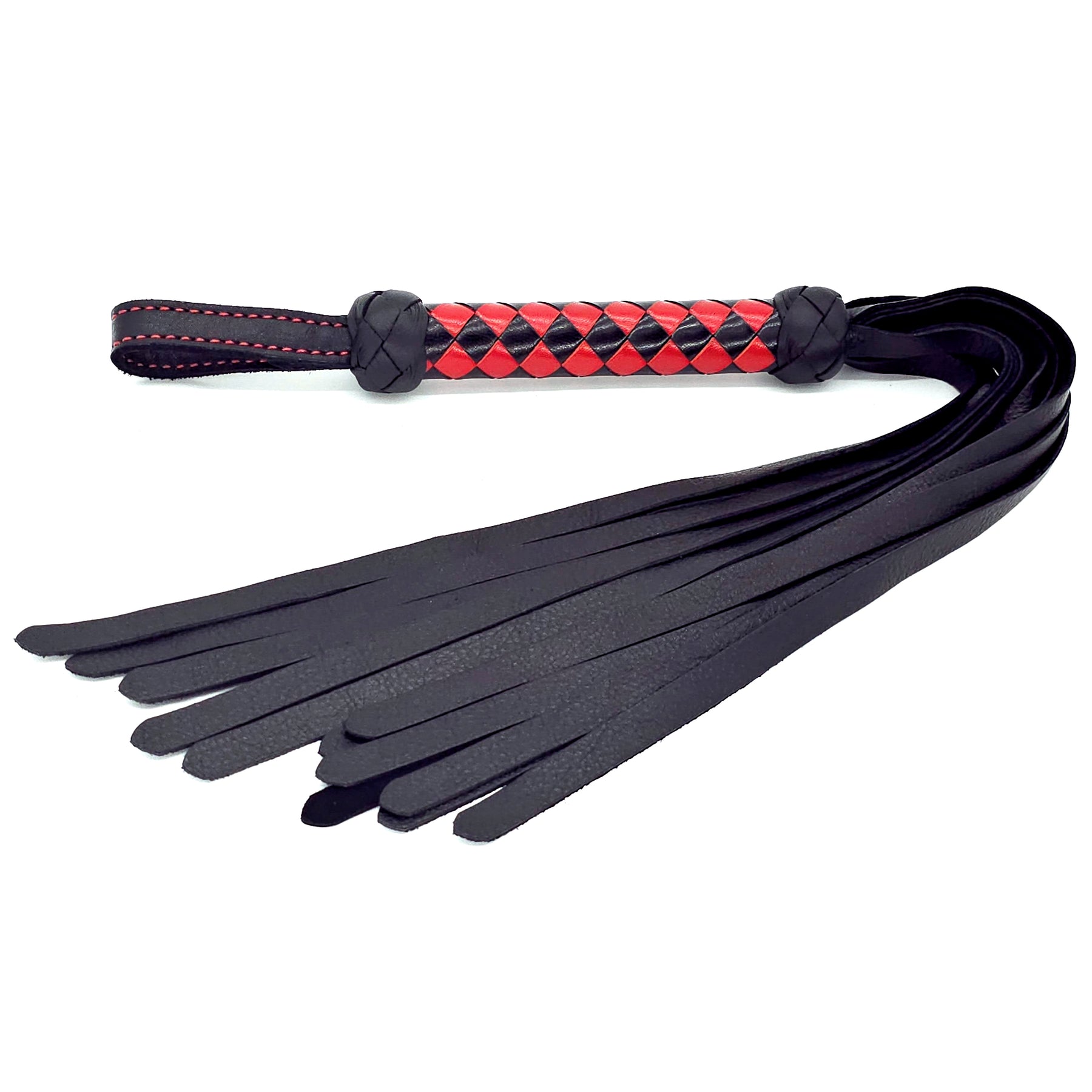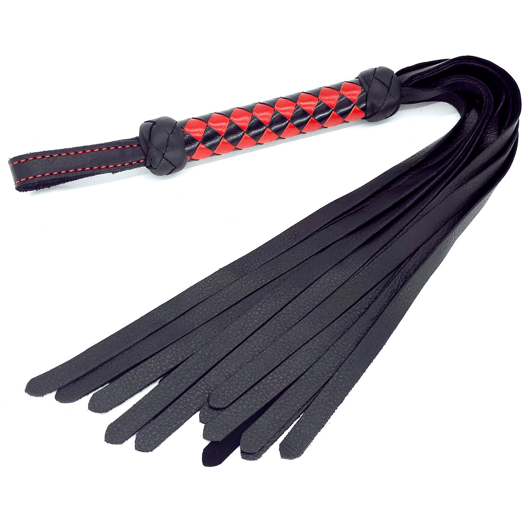 Classic Flogger<br>Black Leather Tails<br>Black & Red Braided