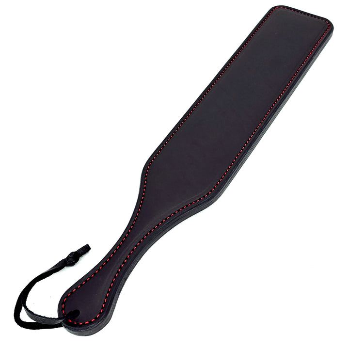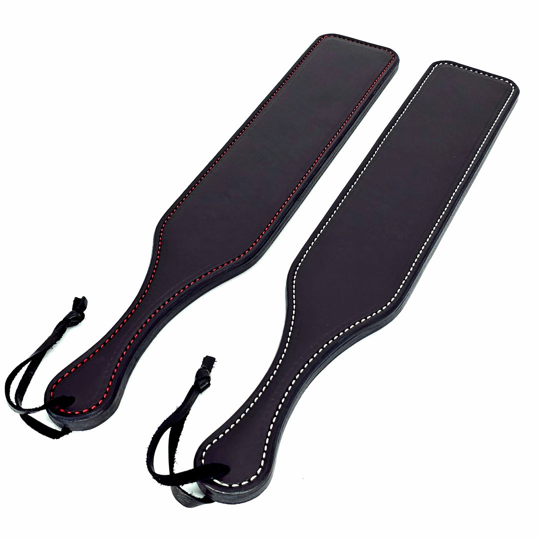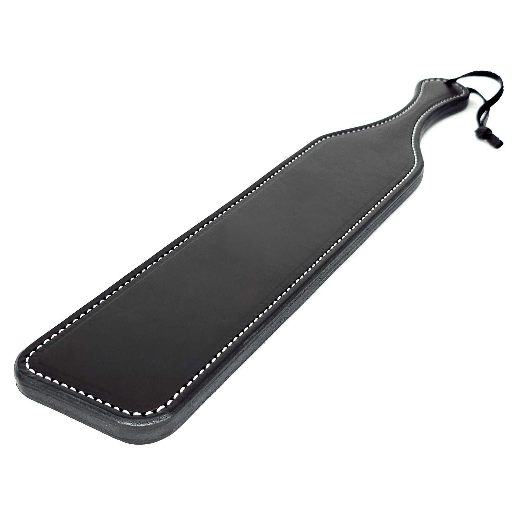 Crafted with three sturdy layers of thick leather and reinforced with spring steel in the handle, our Classic 18" paddle delivers a satisfyingly firm strike while maintaining that irresistible leather sensation. Featuring a sleek black bridle exterior and bold stitching colors, it’s designed to elevate your play with a perfect balance of weight and texture.