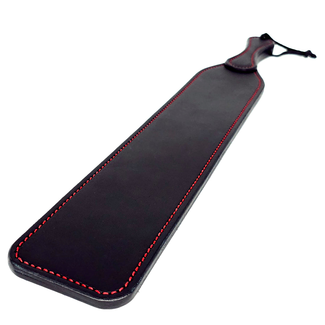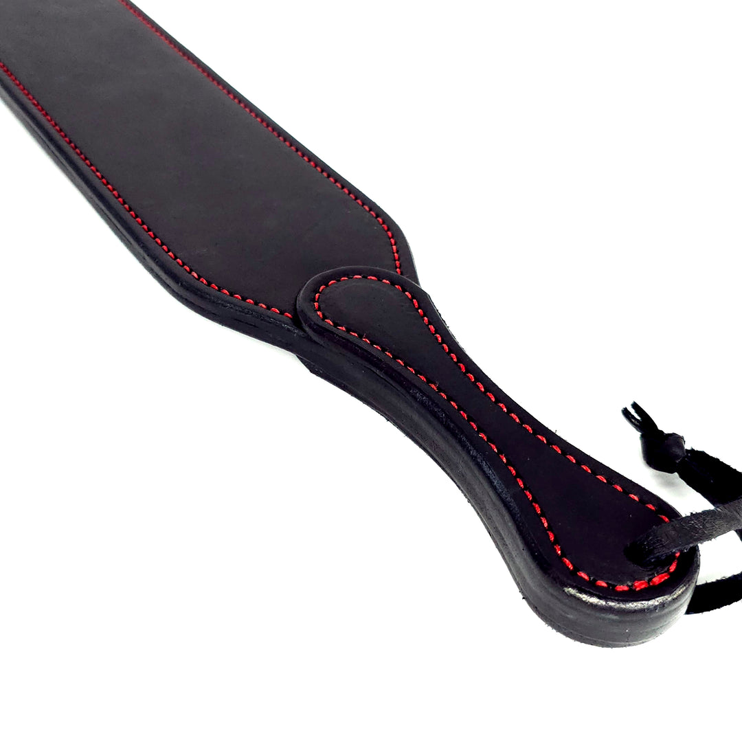Get ready to experience the ultimate in pleasure and pain! Our 22" Leather Paddle is the perfect tool for unleashing intense and exhilarating sensations. Crafted from two layers of sewn bridle leather, this semi-rigid paddle guarantees a wonderful impact on those desired target areas.